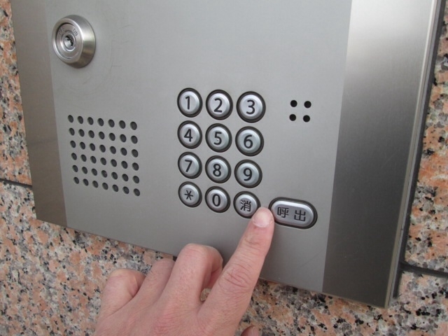 来訪者はまずエントランスの集合玄関機で部屋番号を押し、入居者は室内のモニターで相手の顔を確認してからオートロックを解錠します。