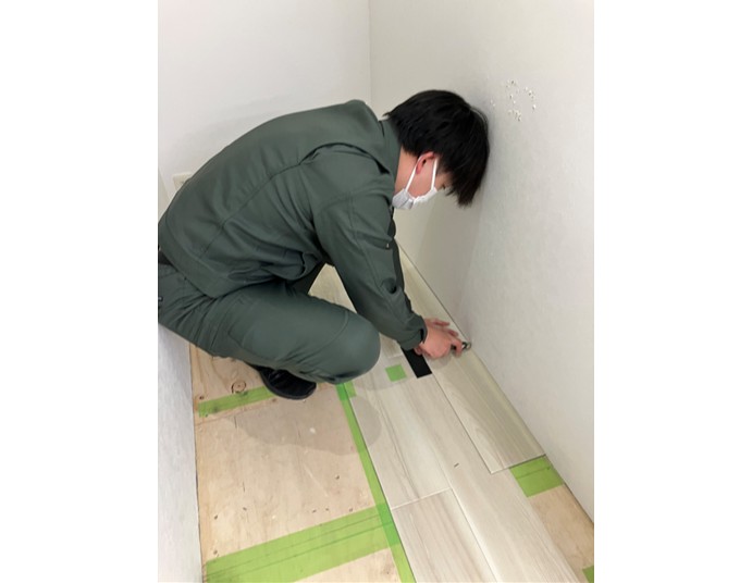 長方形の施工箇所では比較的貼りやすい商品ですが、場合によっては複雑な間取りも施工しなくてはなりません。基本的な施工方法を学びましたが、現場によって様々な間取りや形、施工方法があることを学びました。