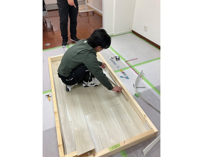 ウッドタイル(WD)施工・ソフト巾木(ハバキ)実習